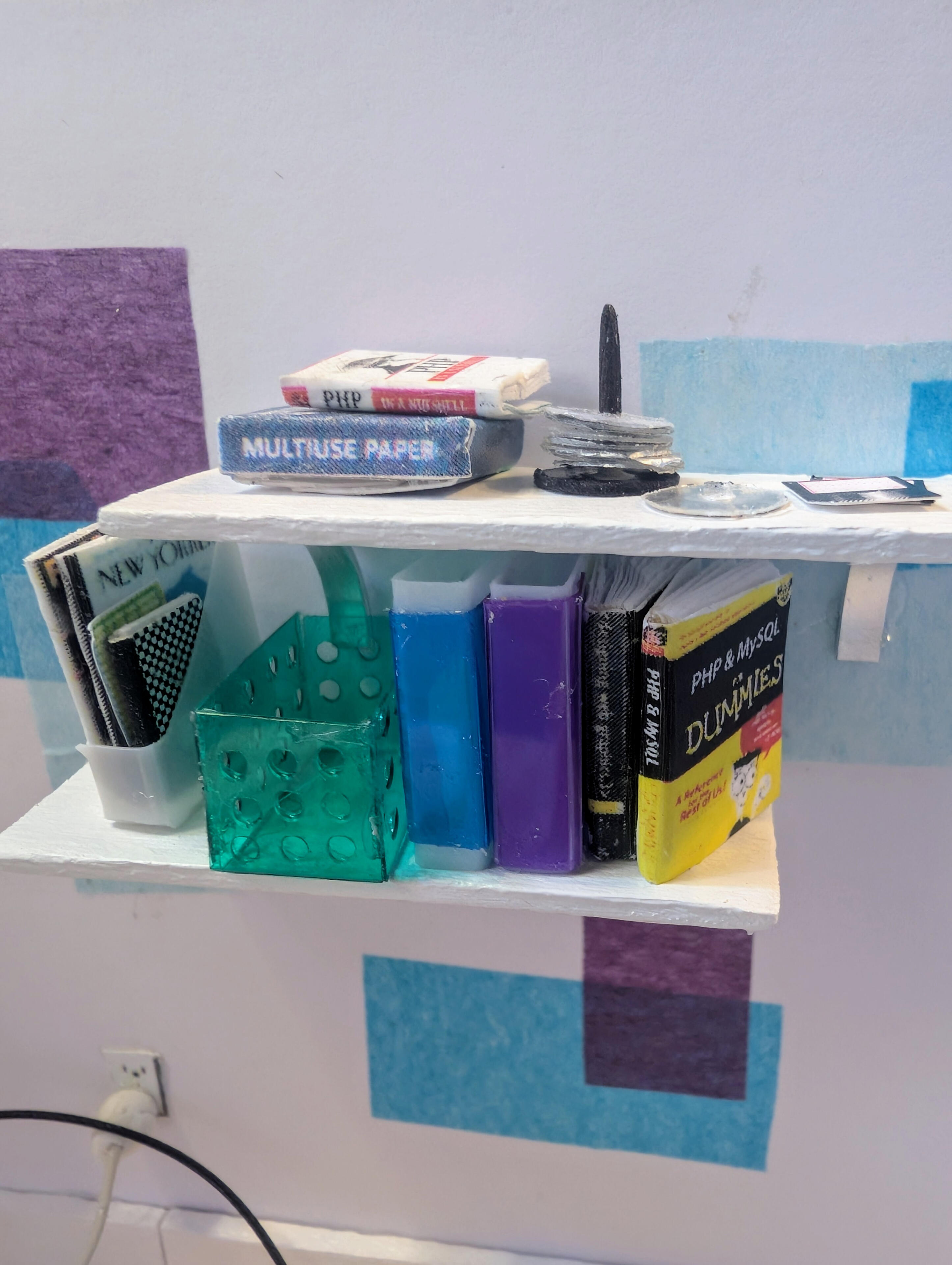 This work reconstructs the domestic infrastructure from which an early internet subjectivity was assembled, at a moment when wifi was a new novelty and a private bedroom could plausibly function as a broadcast studio. The scene includes beige consumer hardware, peripheral sprawl, and a miniature Linksys router purchased with the proceeds of the artist’s first webcam show, marking the point at which experimentation, income, and identity began to converge. This is the artist’s first custom miniature and remains unusually significant as both artifact and origin story.